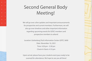 Hi everyone, below is the info for GDSC’s second general body meeting!